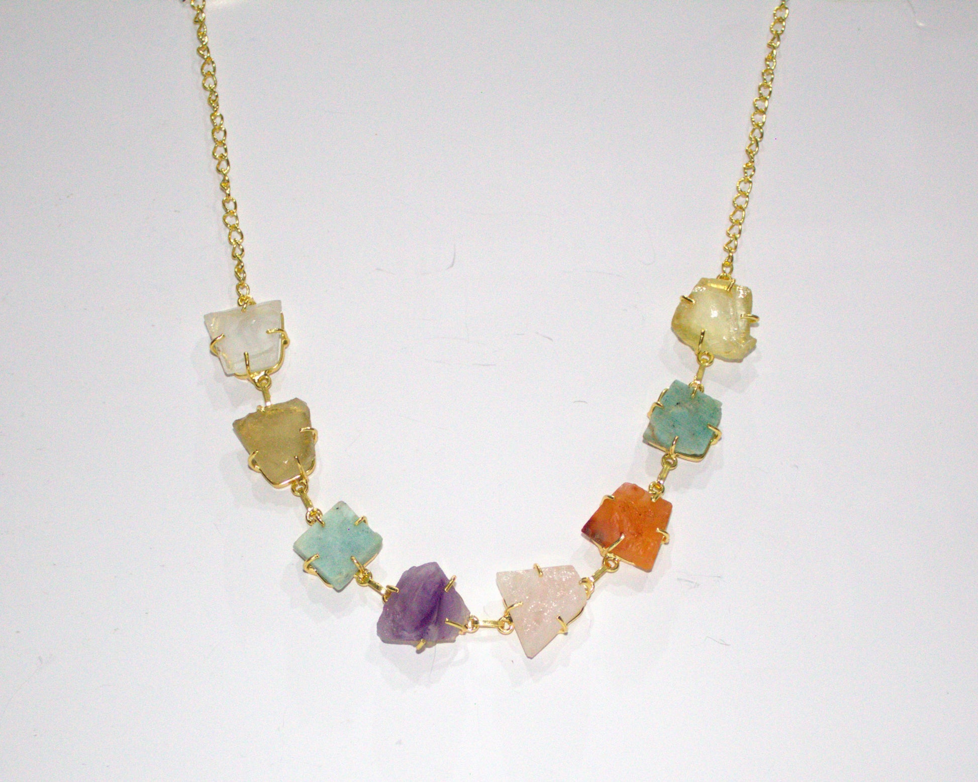 Modern and vibrant, the Prism Square Gemstone Set features raw multicolour natural stones cut in a sleek square form and set in a luxe gold-plated finish. The matching stud earrings and necklace come together to create a balanced statement that feels both playful and elegant. Handcrafted with naturally unique stones, this set is perfect for everyday wear, festive styling, or adding a pop of colour to minimal outfits. Lightweight, versatile, and effortlessly chic.